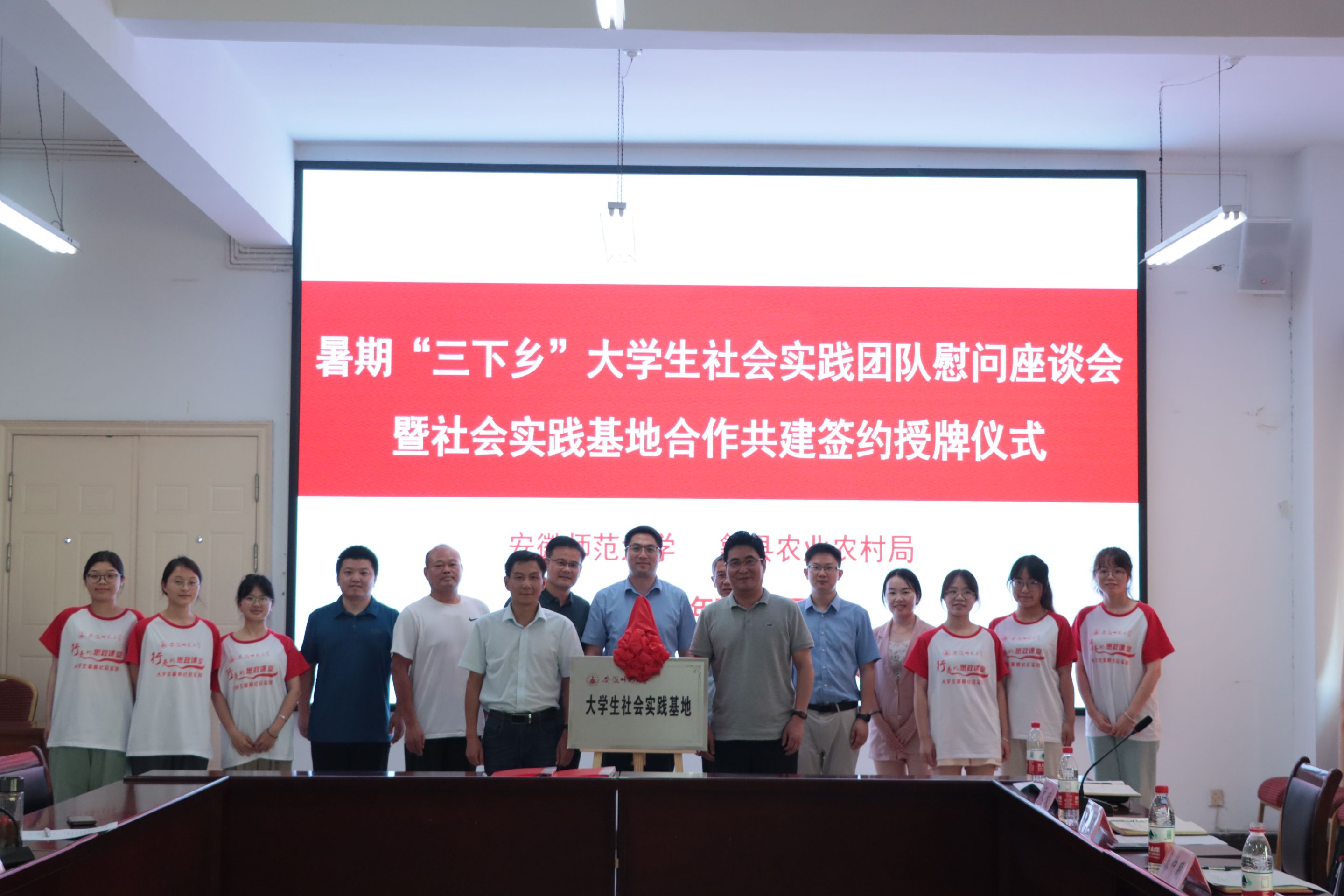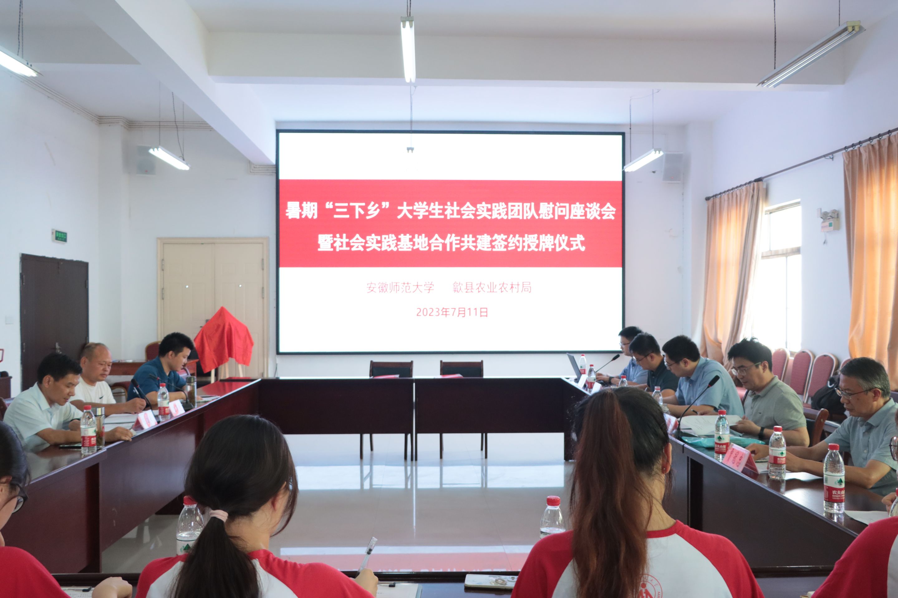 赴歙县农业农村局暑期“三下乡”大学生社会实践团队慰问座谈会暨社会实践基地合作共建签约授牌仪式。活动由江曙光主持。