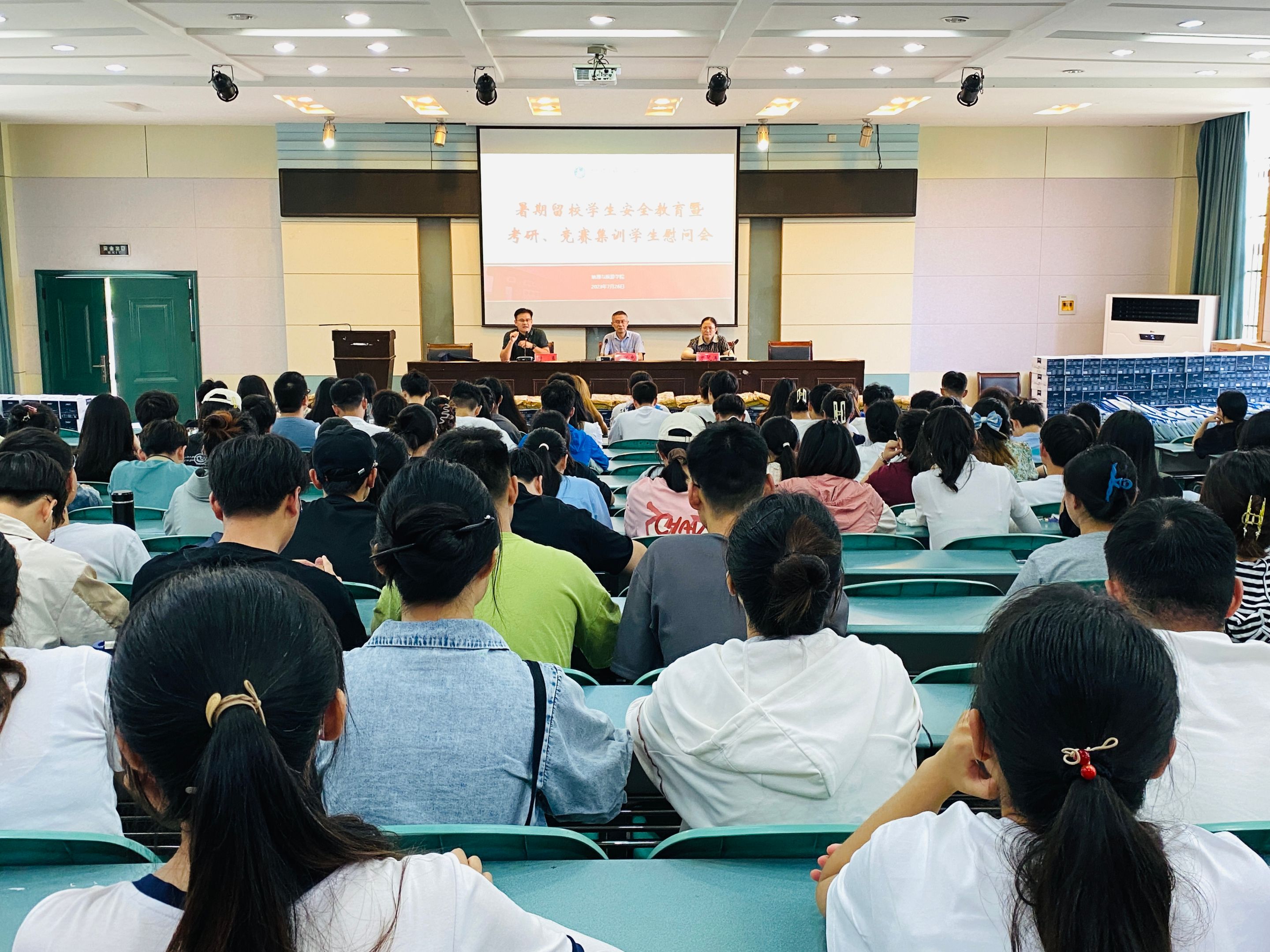 在实验楼101报告厅举行暑期留校学生安全教育暨2024届考研、竞赛集训学生慰问会。番茄小说
