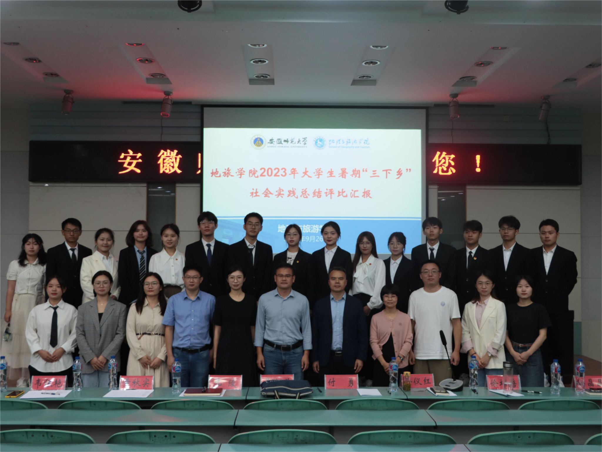 在院实验楼101教室举办2023年大学生暑假“三下乡”社会实践专题评比汇报会。学院党委副书记付勇,地理科学专业教师徐仪红、旅游管理专业教师阮陵、土地资源管理专业教师吴九兴、地理信息科学专业教师徐培培、城乡规划专业教师黄秋实,院团委书记韦银艳,院团委副书记吴文涵以及辅导员操晶晶、谢园担任评委,各团队负责人、各年级团支部代表参加会议。会议由徐瑾主持。