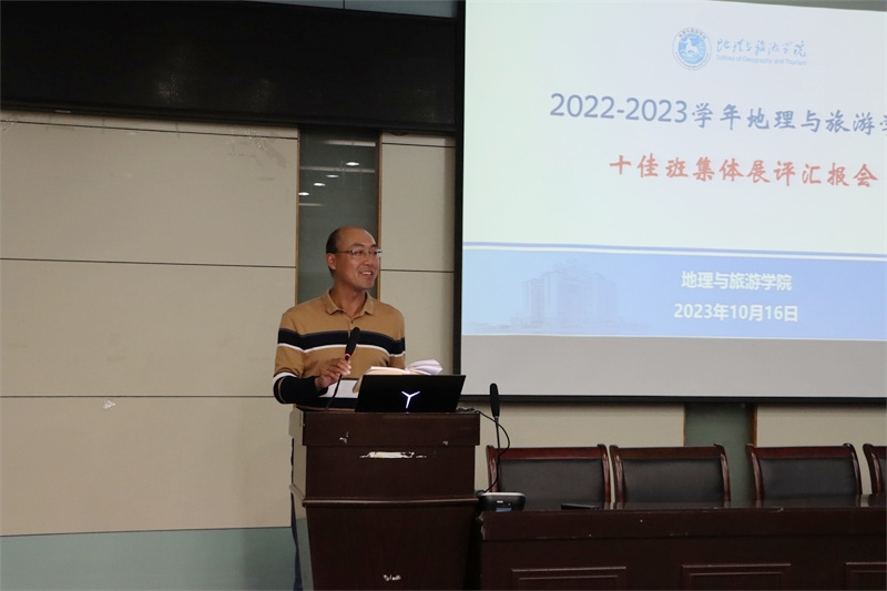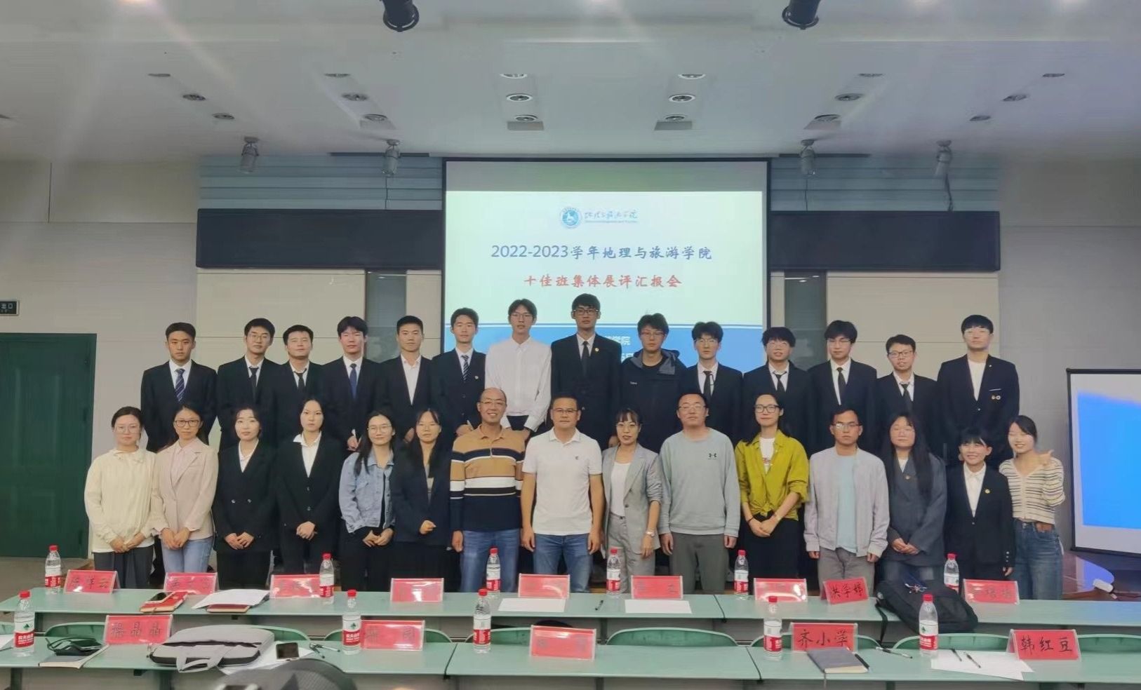 在实验楼101报告厅举行2022-2023学年“十佳班集体”风采展评活动。学院党委副书记付勇、专业教师梁栋栋、吴立、徐培培、王雪微、洪学婷、专兼职辅导员和学生代表参会,会议由2022级旅游管理专业徐瑾主持。
