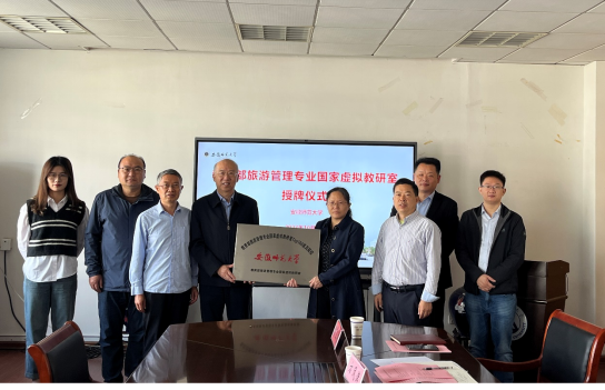 2023年10月20日,教育部旅游管理教指委副主任兼虚拟教研室主任马勇、教研室秘书张瑞赴芜湖,为我校旅游管理专业成为教育部旅游管理专业国家虚拟教研室成员单位进行授牌。