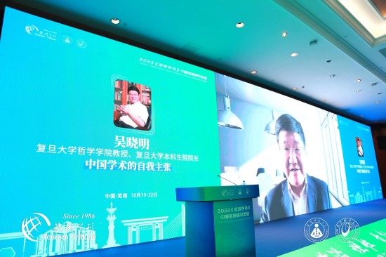 复旦大学本科生院院长、复旦大学哲学学院吴晓明教授发表了题为《中国学术的自我主张》的主旨报告。吴晓明教授以中国式现代化为背景,讲述如何建立中国学术的自我主张。他表示,以学徒状态,意味着我们要完成现代化的任务,就必须大规模的向外学习,而大规模的向外学习,使得我们的学术总体上进入了对外部学术的学徒状态。从学徒状态到自我主张是学术发展的一般规律,学徒状态虽然是必要的和意义深远的,但存在基本的缺陷。因此,需要实现自主知识体系构建、对外学习与自我主张的统一。