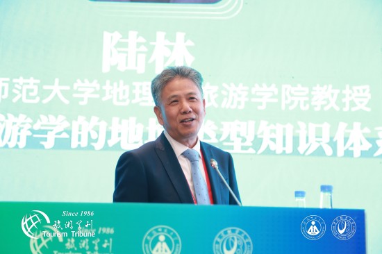 陆林教授发表了《构建旅游学的地域类型知识体系》的主旨报告。陆林教授首先从国家政策、实践基础、理论基础、认知特征4个方面介绍了构建旅游学的地域类型知识体系的逻辑。然后,他对城市旅游、乡村旅游、自然保护地旅游、遗产地旅游、旅游地域类型的空间关系5个方面的基本内容进行了详细介绍,并强调旅游学的地域类型知识体系是根据地域及其旅游发展特点的差异性来划定。最后,他从学术挖掘、经验提炼、国际对话3个视角对构建旅游学的地域类型知识体系作出展望。