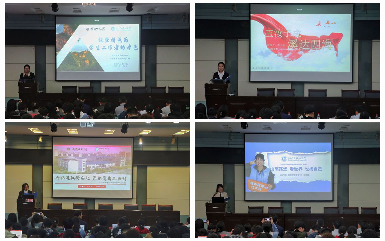 百瑞德风华奖学金暨“十佳学生骨干”评选办法。经学生申请、班级推荐和学院初审,共有24名来自各专业的学生脱颖而出进入汇报评比环节。汇报人依次进行PPT现场汇报展示,声情并茂地讲述自己的学习历程、实践经历、心得体会、个人风采以及对未来的展望,用实干描绘未来蓝图,借奋斗续写时代华章,赢得了全场喝彩。