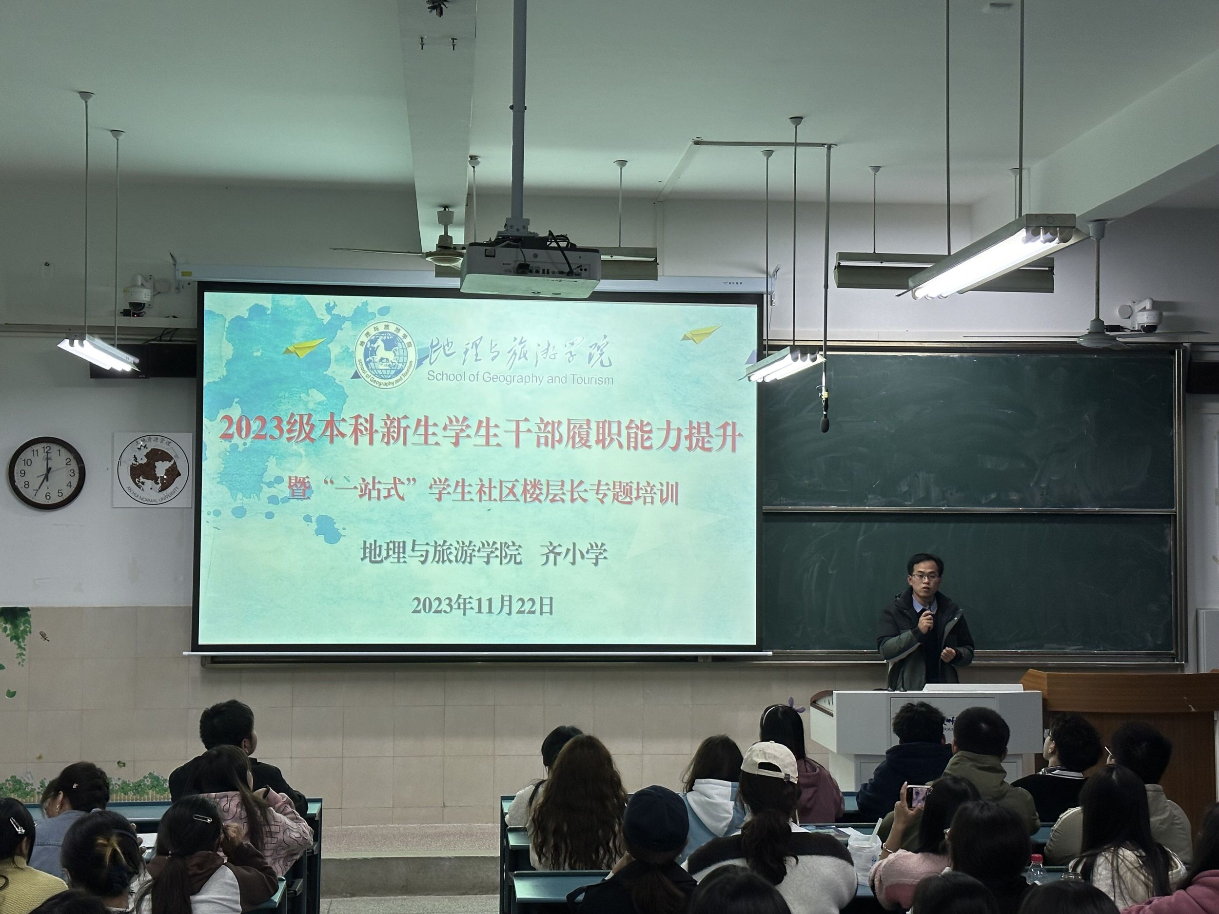 会上,齐小学从学生干部特点和作用出发,强调学生干部作为师生沟通的桥梁和纽带,承担着引导服务同学、推动班级建设的重要职责,发挥着自我教育、自我管理、自我服务、自我监督的重要作用,是学生工作不可替代的重要力量。他从学生干部应具备的基本礼仪、基本素质、基本意识、基本能力和应处理的若干关系五个方面,深入讲解了如何成长为一名优秀的学生干部。他指出,作为一名学生干部,应具备过硬的思想政治素质、道德素质、心理和身体素质,具有较强的安全意识、责任意识、团队意识、创新意识、服务意识和形象意识,在日常工作中不断加强人际交往、组织管理、开拓创新、随机应变等能力建设,认真处理好同老师、同学、同事的关系,充分展现新时代学生干部的责任、担当和风采。他还针对学生干部在公文写作、会务组织、新闻采写等方面存在的短板和不足,结合具体事例和校园活动进行讲解,引导大家树立正确认知、形成良好习惯、培养胜任能力,努力成为一名政治坚定、德才兼备、素质全面、模范表率、堪当重任的新时代优秀学生干部。