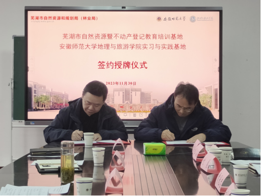 在签约仪式上,学院和芜湖市自然资源和规划局(林业局)领导各自介绍了单位情况,深入交流了后续合作方向,签订了合作协议,并举行授牌仪式。双方重点就土地资源管理专业学生在岗实习、市县自然资源和不动产登记教育培训教学计划等展开交流。同时,围绕自然资源开发利用、不动产登记、国土生态修复、地灾防治、实景三维建设、时空大数据、国土空间规划等重要研究课题和技术服务需求进行了深入探讨。
