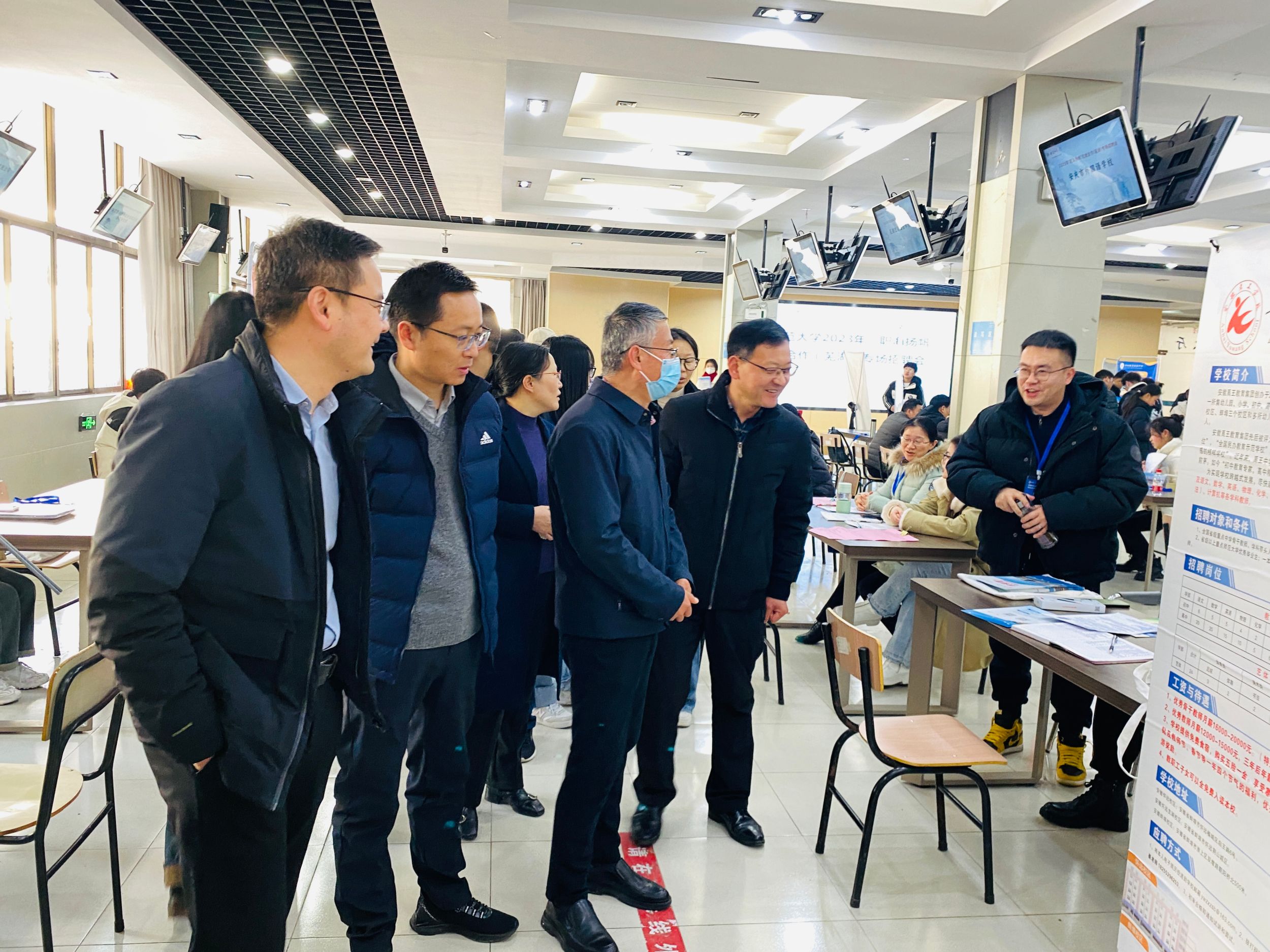 党政领导班子成员和专业负责人深入招聘现场与招聘单位负责人交流洽谈。