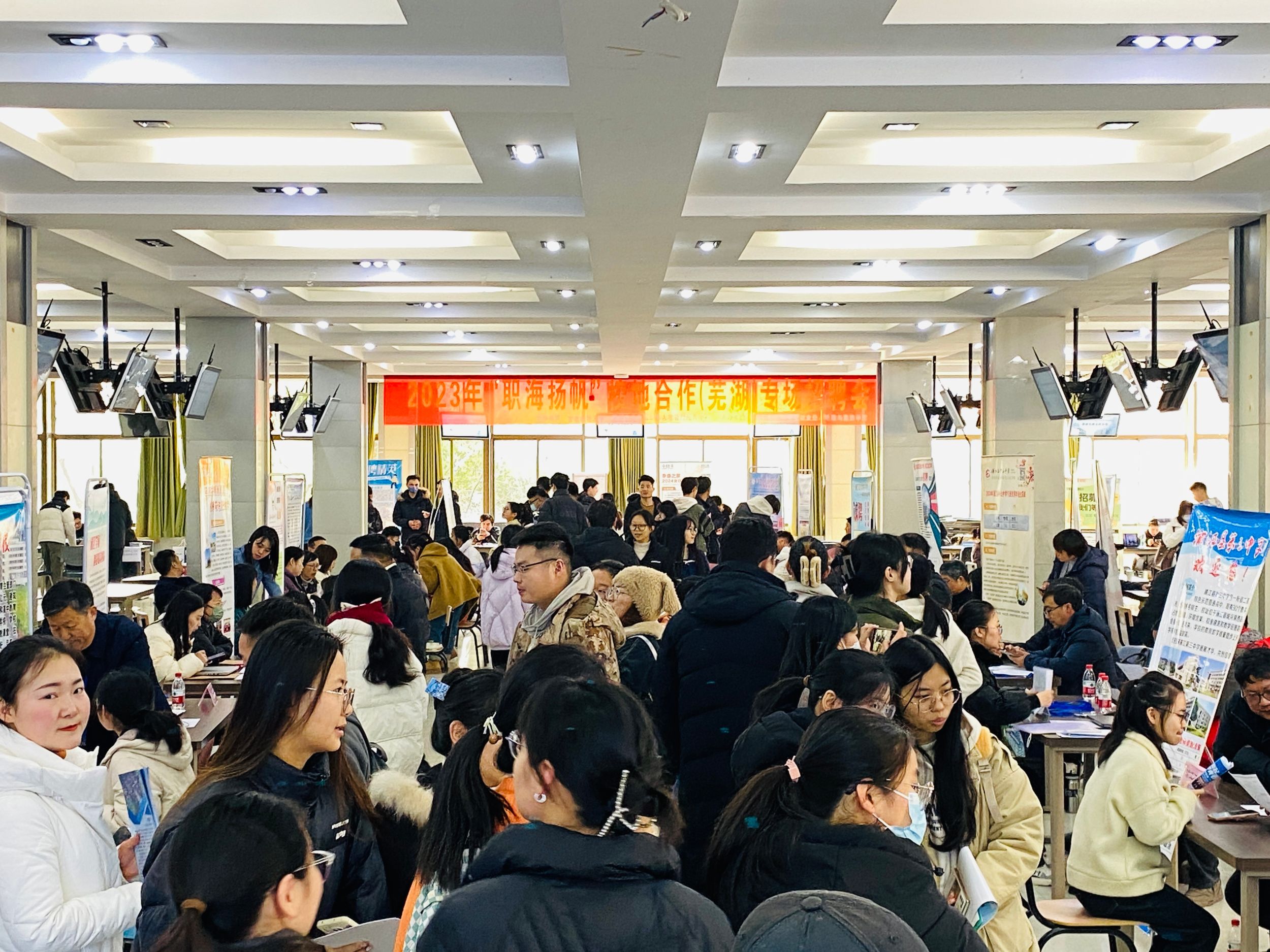 本次招聘会采取简历投递、现场宣讲、后台面试相结合的方式,力图求实、求快、求准。应聘者手持精心制作的自荐书和简历,穿梭在众多展台间仔细搜寻着心仪的企业,与企业HR进行深入沟通,主动了解用人单位的情况。前来招聘的事业单位主要领导和企业HR、高管亲自坐镇,宣传单位发展理念和招聘要求,现场人潮涌动,十分热烈。
