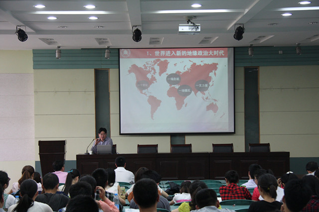 实验楼101教室作了题为《中国崛起的地缘政治学思考》的学术报告。国旅学院相关专业教师和研究生参加了报告会。