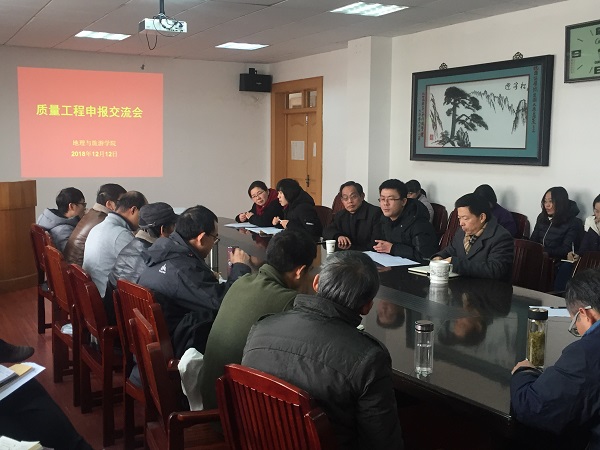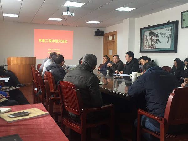 召开质量工程申报交流会。邀请教务处教研科胡炜佳老师指导申报工作。院长苏勤、书记贾冠忠、副院长曹卫东和各专业老师参加会议。会议由曹卫东主持。