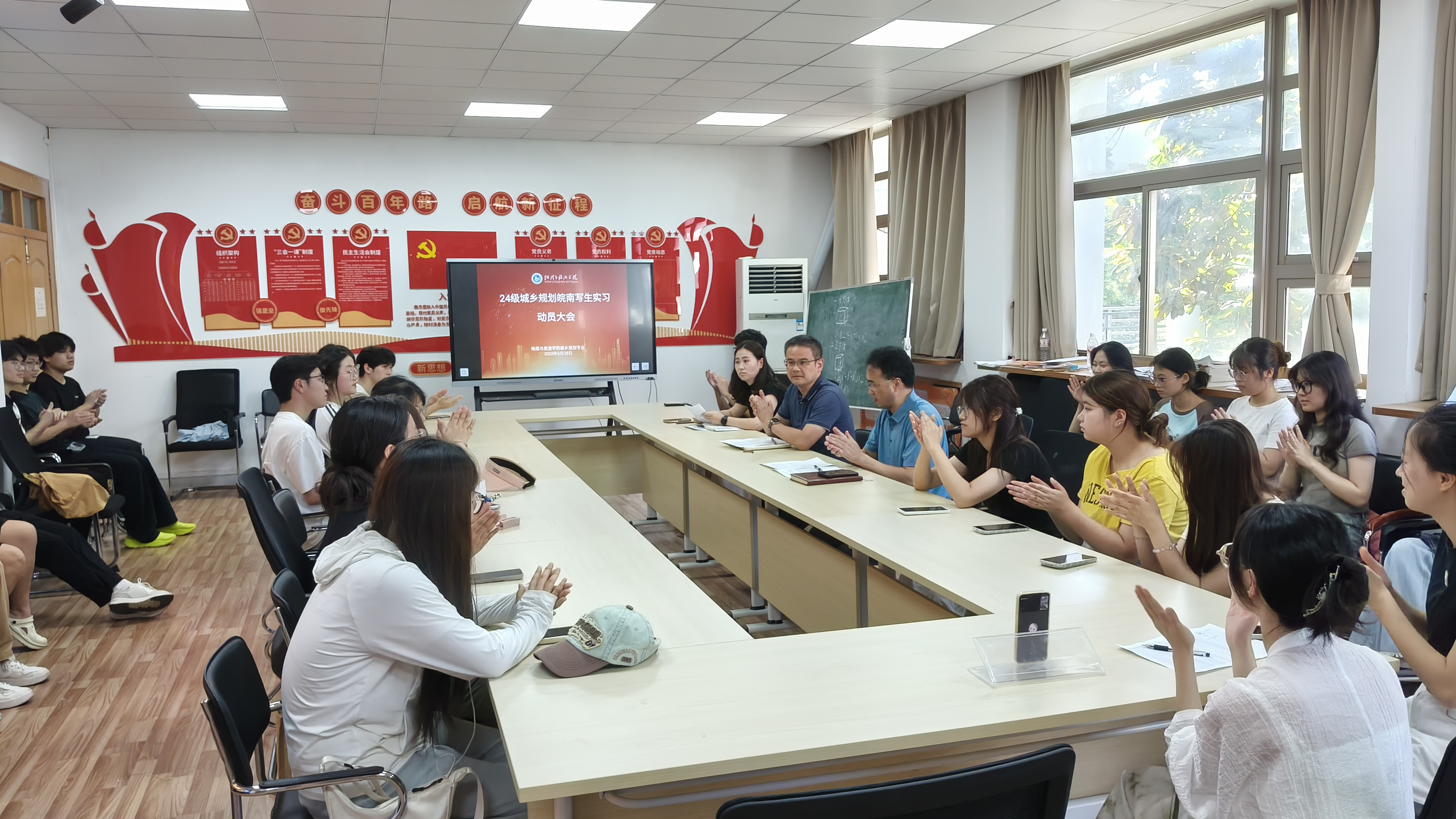 在行政楼2楼会议室召开2024级城乡规划皖南写生实习动员大会,院党委副书记付勇、副院长杨兴柱、专业教师金莹莹以及2024级城乡规划专业全体同学参会。会议由金莹莹主持。