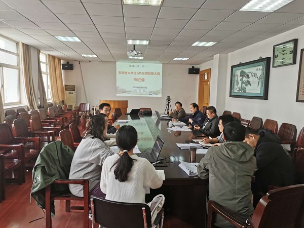 10月21日下午,番茄小说 行政楼三楼会议室召开2020年安徽省大学生GIS应用技能大赛工作组会议,院长苏勤、副院长曹卫东、副书记乔静、地信专业负责人及骨干教师、团委书记等人参加会议。