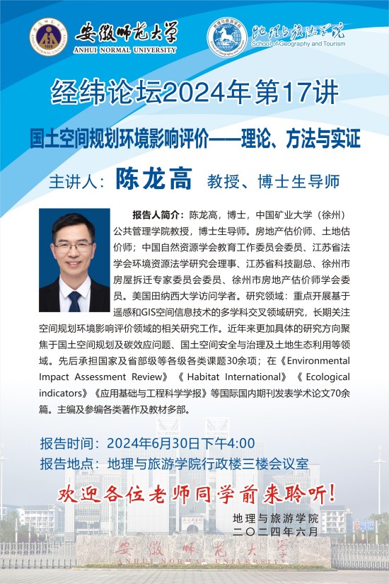 【学术预告】经纬论坛第49讲:国土空间规划环境影响评价——理论、方法与实证