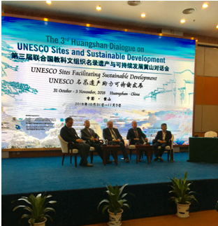 2018年10月31日至11月3日,由中国科学院空天信息研究院、联合国教科文组织(UNESCO)国际自然与文化遗产空间技术中心(HIST)主办,黄山风景区管理委员会承办的第三届UNESCO名录遗产与可持续发展黄山对话会在黄山市屯溪区举行。UNESCO助理总干事F. Schlegel女士,UNESCO人与生物圈计划中国委员会主席许智宏院士,国家林草局自然保护地管理司司长杨超,国家文物局世界文化遗产司副司长刘洋,黄山市委常委、常务副市长刘孝华等出席了开幕式并致辞。会议吸引了来自UNESCO、国际自然保护联盟和国际古迹遗址理事会等国际组织代表,美国、突尼斯、泰国、法国、韩国、印尼、意大利、加拿大、马来西亚、英国、巴基斯坦、荷兰、孟加拉国、斯里兰卡、德国、塔吉克斯坦、坦桑尼亚、喀麦隆等国代表共50余人,以及来自中国主管部门和地方政府、科研机构和大学,世界遗产、世界生物圈保护区和世界地质公园及相关保护区的代表共130余人参与会议研讨。