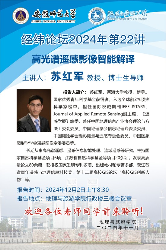 【学术预告】经纬论坛第54讲:高光谱遥感影像智能解译