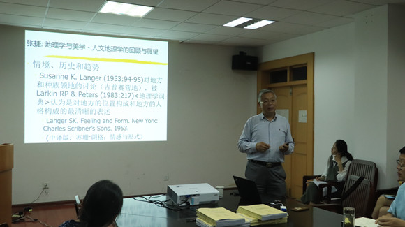 首先,张捷从地理学与美学起源的三个问题即“盆景”悖论、地理知识悖论、技术依赖与经验积累讲起。从人文地理学的回顾与展望方面说明了地理学的美学传统,提出了从地理学的开山大师洪堡到当今地理学大师吉登斯、段义孚和哈维对地理学、美学的看法。然后,从学科的双向特征,美学的角度以及地理学的角度阐述了地理学与美学的关系。以中国古代书法以及自己的中国书法作品为例,介绍了中国人对地理学与美学的自古以来独到的看法。最后,张捷给我们展示了自己的相关研究成果——源园的设计理念与展现。