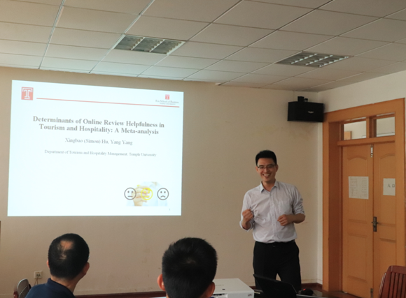 张影莎从国际旅游与国际期刊、国际研究热点、西方研究写作范式以及论文发表经历与建议等方面,讲述了她投稿外文期刊的经验。胡兴报讲述了这篇题为《Determinants of Online Review Helpfulness in Tourism and Hospitality: A Meta-analysis》论文写作的过程以及研究的成果。