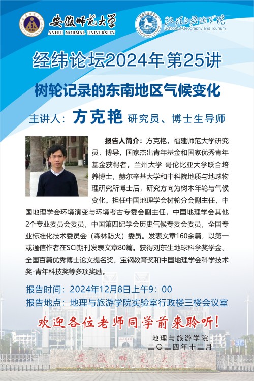 【学术预告】经纬论坛第57讲:树轮记录的东南地区气候变化