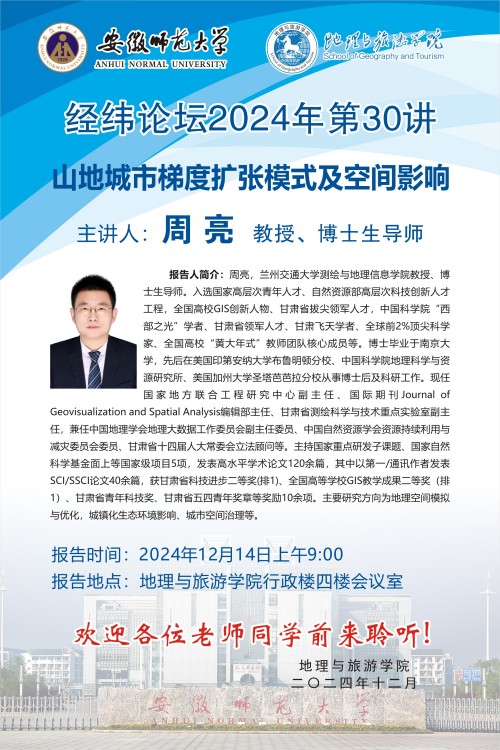 【学术预告】经纬论坛第62讲:山地城市梯度扩张模式及空间影响