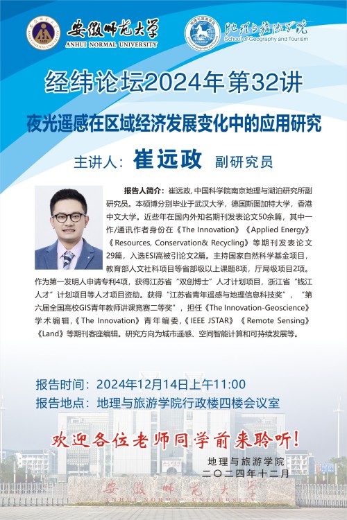 【学术预告】经纬论坛第64讲:夜光遥感在区域经济发展变化中的应用研究