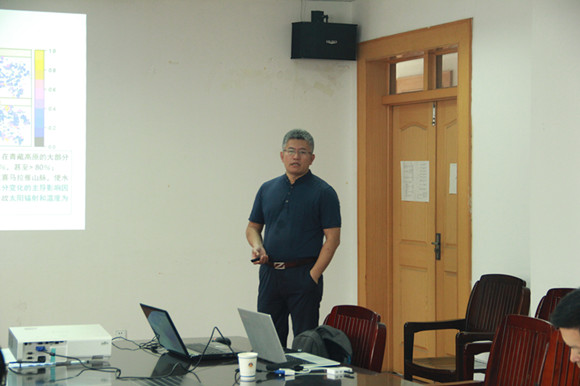 张强分三个部分对水文循环及其效应进行了讲解。首先是土壤水的研究,分别阐述了土壤水分变化的生态和环境效应、土壤水分变化在灾害检测及水文过程模拟中的重要理论意义,并以青藏高原土壤水分为案例,进行详细的分析;然后,根据国内外研究现状,提出土壤水分检测、时空特征、成因及生态环境效应已成为国际研究热点,并定量化地进行多元数据分析,以青藏高原为例,解释了土壤水时空变化的成因,认为降水对土壤水分变化的影响较大,但并非主要因素,主导因素是太阳辐射和温度;最后,张强对中国区域土壤水的变化特征及意义进行了阐述,指出中国土壤水分整体时空格局仍是北干南湿,中国未来土壤水分空间格局将会发生反转,中国区域土壤水分大部分呈下降趋势。