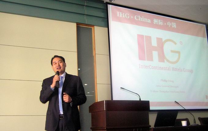 丁总经理利用生动的视频展示了洲际集团一百多年的发展历程。他的报告分为三个部分:一是洲际集团的使命、集团的战略以及致胜之道和他自己的职业生涯规划。二是洲际集团的概况。该集团目前已成为全球最大、拥有客房数最多的酒店管理公司,旗下拥有洲际酒店、皇冠假日酒店、假日酒店、假日快捷酒店、Staybridge Suites、Candlewood Suites和Hotel Indigo等七大品牌。三是洲际集团在中国的发展现状及未来的发展趋势。1984年“洲际”进入中国,成立了第一家酒店——北京丽都假日酒店,目前已发展到126家,拥有四个品牌。他预言未来三年内洲际将会为中国提供200多个总经理、3000多个部门经理和70000多名员工的就业机会。