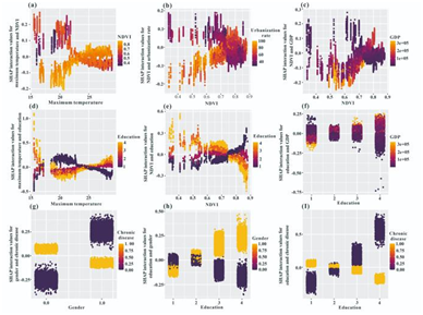 研究采用机器学习模型对地理环境与中老年人群的心理健康关系进行系统性建模。结果表明,地理环境因素(如气温、植被、人口密度、绿地)与中老年人群的心理健康普遍呈非线性关系;二者存在复杂的交互作用与显著的空间异质性,不同区域之间的主导因素存在较大差异。这些结论为理解环境与心理健康关系,以及为城市规划、环境管理策略提供了相应参考。