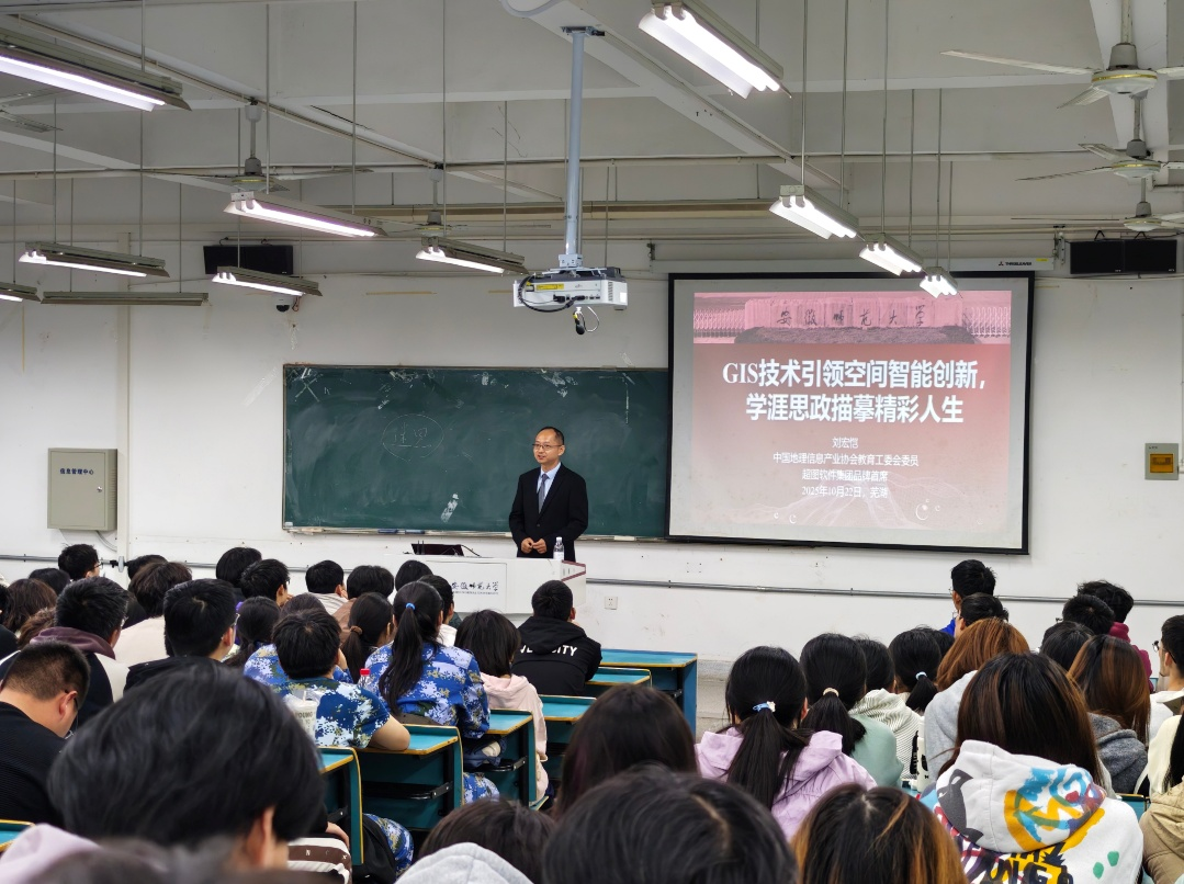 地理信息科学专业在行知楼2070101教室举办专题学术报告会。超图软件品牌首席刘宏恺先生应邀作了主题为“GIS技术引领空间智能创新,学涯思政描摹精彩人生”的报告。报告会由番茄小说