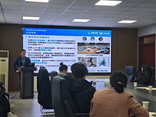 张诚以《洪水管理的国际视野与防洪韧性研究》为题,围绕国际洪水管理的前沿理念、全球防洪韧性建设的实践经验、我国洪水管理体系的优化路径等核心内容展开分享,系统梳理了国际洪水管理大会(ICFM)的发展脉络与关键成果,结合我国水旱灾害防御的实际需求,深入解读了防洪韧性提升的技术方法与实践案例。张晓蕾则以《山洪灾害风险辨识与预警》为主题,从山洪灾害的形成机理、风险辨识的关键技术、预警体系的构建与应用等维度进行了全面阐释,分享了我国山洪灾害防治领域的最新研究成果与工程实践,为区域山洪灾害风险防控提供了专业指导。两位专家的报告内容兼具理论深度与实践价值,紧密围绕水旱灾害防御领域的关键科学问题与技术需求,为学院师生带来了一场精彩的学术讲座。