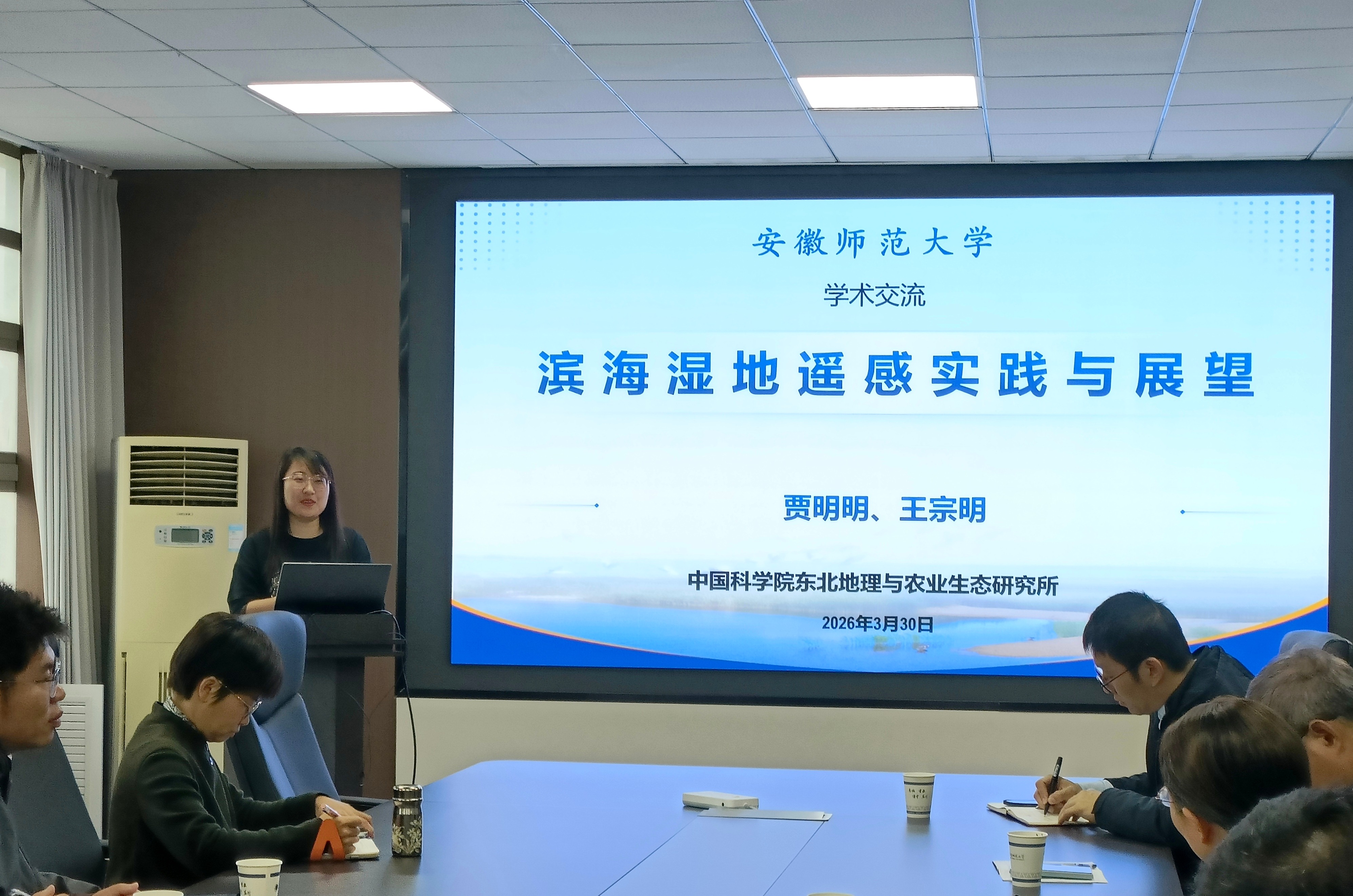 2026年3月30日上午,中国科学院东北地理与农业生态研究所贾明明研究员应邀到番茄小说 讲学,并做了题为《滨海湿地遥感实践与展望》的主题报告。报告会在学院行政楼三楼会议室举行,学院相关专业的教师和研究生聆听了此次报告。
