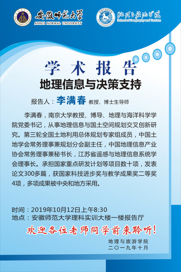 【学术预告】学术报告:GIS一流专业建设的探索与实践