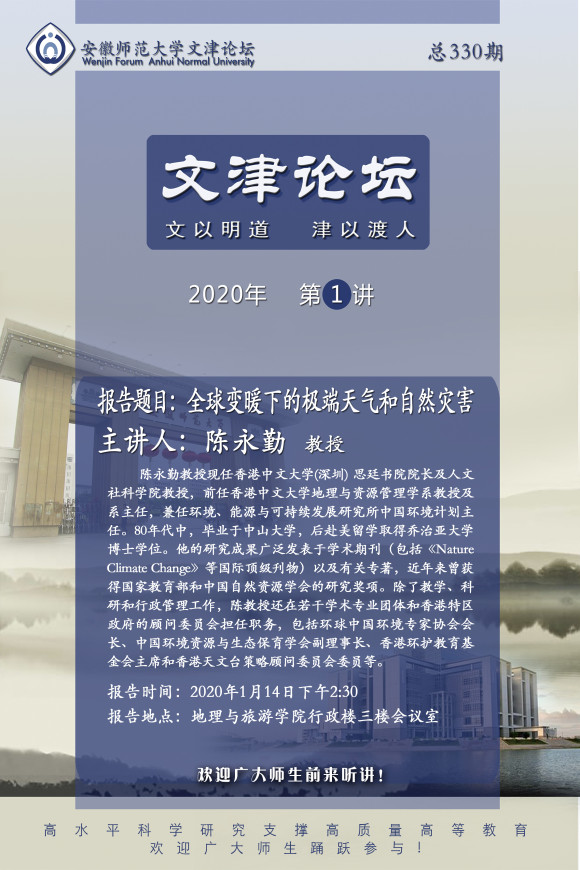 【学术预告】陈永勤:全球变暖下的极端天气和自然灾害
