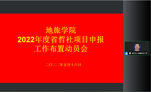 通过腾讯会议平台召开2022年度安徽省哲学社会科学规划项目申报工作动员布置会。符合申报条件的30余名教师参会。