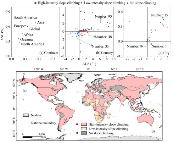 城市用地扩张的爬坡现象日益普遍,并在城市形态、景观与治理方面形成了独特的特征,对全球城市可持续发展提出了挑战。联合国可持续发展目标也要求在城市发展实践中进行数据驱动的技术革命,即更多地利用地理空间大数据来调查全球各地的城市发展状况。现有研究通常采用中高分辨率遥感影像或激光雷达数据对城市用地扩张过程及其影响进行研究,然而图像预处理和解释需要大量的时间和人力成本,导致大多数研究都集中在全球子集(如城市或国家)上。基于此,本研究采用夜间灯光遥感数据构建城市用地爬坡量化分析框架并揭示全球城市用地爬坡趋势。研究建议可持续城市发展应考虑到城市用地爬坡现象,并制定合理的治理策略来应对其潜在的影响。