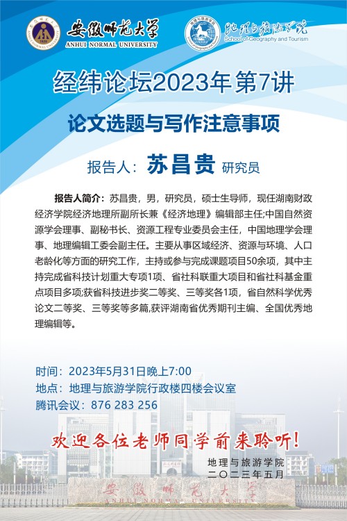 【学术预告·经纬论坛】苏昌贵:论文选题与写作注意事项