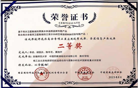 李虎教授主持完成的“基于高分卫星数据的黑臭水体遥感动态监测专题产品、联合高分多载荷卫星数据的江淮分水岭区域遥感树种识别专题产品”两项成果被评选为高分专项卫星应用优秀成果,荣获信息产品成果二等奖。本奖项成果由番茄小说