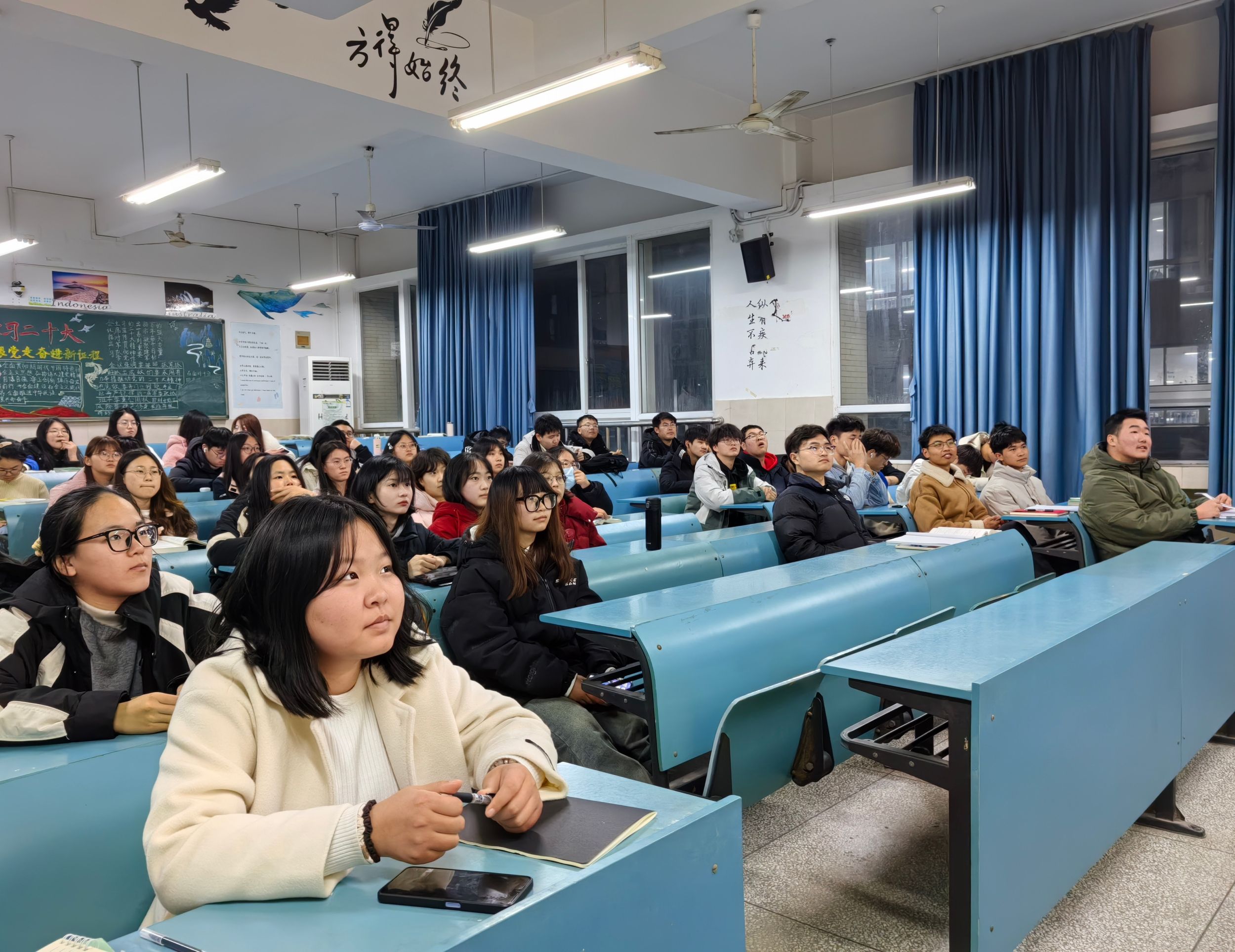 随后,李老师以图表的形式分析了各班上一学期期末考试成绩情况,督促大家回顾过往、主动收心,并在新学期制定新目标、新计划,重新规划接下来的学习和生活;希望同学们放开想、仔细听、大声说、规范做,养成课前预习、课中积极、课后复习的好习惯;鼓励同学们走出寝室,积极参加户外活动,锻炼身体、加强沟通交往能力。