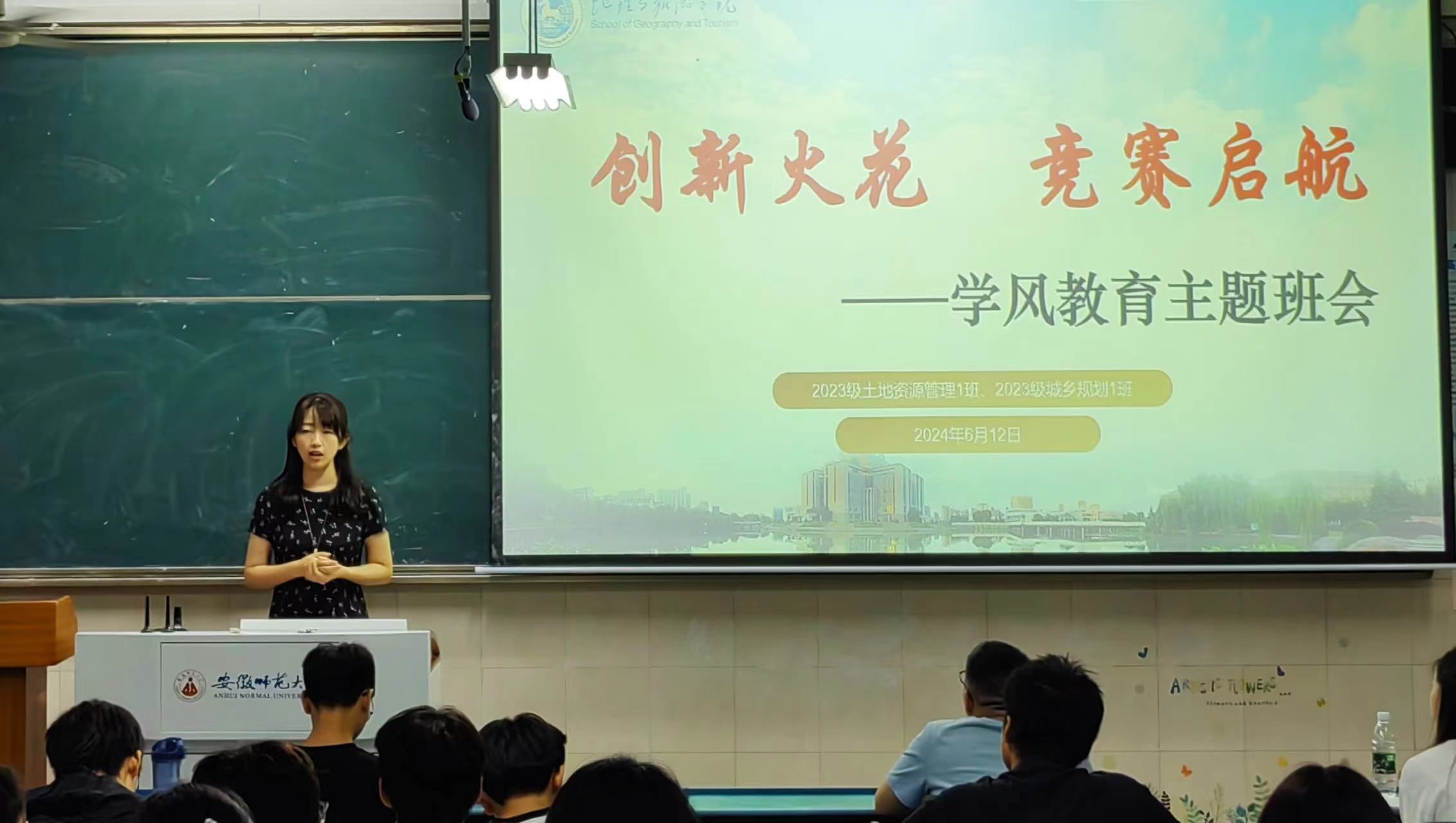 2024年6月12日晚,“创新火花、竞赛启航”学风建设主题班会在花津校区行知楼2040202教室成功举行,本科生导生赖淑媛,胡羽阳,李诗毅,李长乐,王冰冰及23级城乡规划、土地资源管理专业全体本科生参加,会议由辅导员李婷君主持。