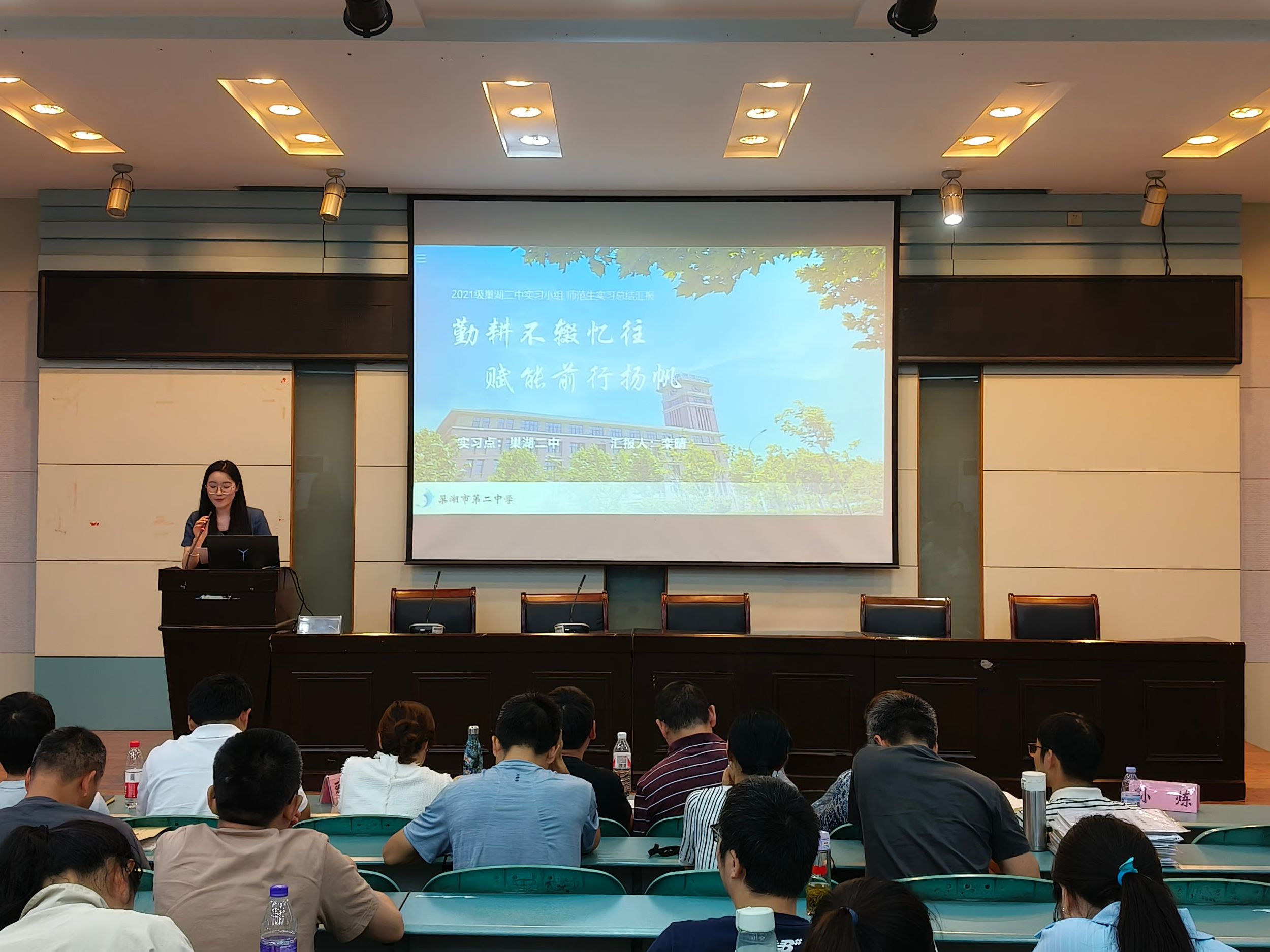何铵楠 周润)6月19日,2021级地理科学(师范)专业于实验楼101报告厅召开教育实习总结会,地理专业教师孙炼、房莉、刘新圣、朱晓强、郦倩玉受邀担任评审,焦华富、朱永恒、张平究等专业教育实习指导教师、2021级地理科学(师范)专业全体同学参会,报告会由朱雅洁同学主持。