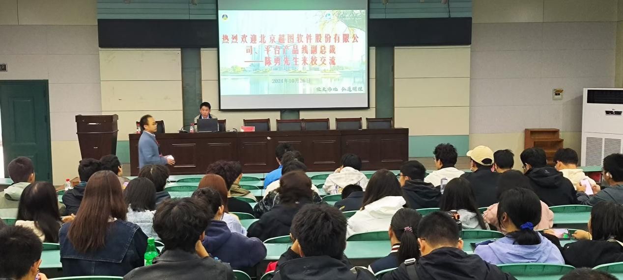 在学院实验楼报告厅101开展了GIS名企进校园的主题讲座活动。本次活动邀请到了北京超图软件股份有限公司平台产品线副总裁陈勇和易智瑞信息技术有限公司技术工程师张妍然给2024级地理信息科学专业的学生们分享专业经验。本次活动由2024级地理信息科学专业辅导员沈涵以及2024级地理信息科学专业全体新生参加,活动由地理信息科学专业汪左老师主持。
