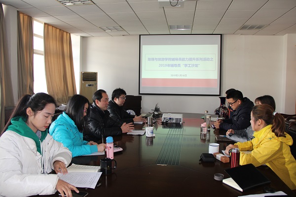 本网讯(地旅学院 吴文涵)“夯实工作基础,提升综合素质”。为进一步加强学工队伍建设,推动辅导员队伍专业化、职业化发展,强化岗位责任意识,提升学生工作水平,地旅学院于2019年1月17日至18日成功举办了辅导员能力提升计划之“学工沙龙”活动,院党委副书记乔静及全体专兼职辅导员全程参与了学习交流活动。