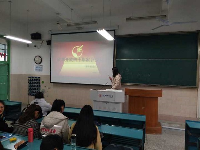分享会上,卢雨佳结合春节展现传统文化的传承,讲述中国改革开放后的发展进步与人民物质文化生活的日益丰富,认为应坚持文化自信,保留并传承传统习俗。唐鸿结合家乡的变化为同学们提供观察改革成就的新视角,贫困户在政府的帮助下从破旧危房住进崭新安全的大房子,村子里开始出现提供人们健身的场所……无不展现中国改革开放的伟大成就。王健结合调研家乡精准扶贫,介绍党和国家精准扶贫、精准脱贫政策。现场气氛融洽而热烈,这几位同学的分享充满着对家乡的自豪感,洋溢着对未来的期许感,饱含着作为一名中国人的骄傲感,赢得同学们的阵阵掌声,既为他们的精彩演讲鼓掌,更为祖国的伟大强盛鼓掌。