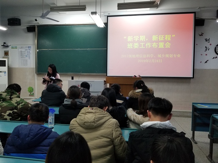 2017级地理信息科学及城乡规划专业“新学期,新征程”主题班会暨班委工作布置会在行知楼召开,会议由辅导员彭媛媛主持。