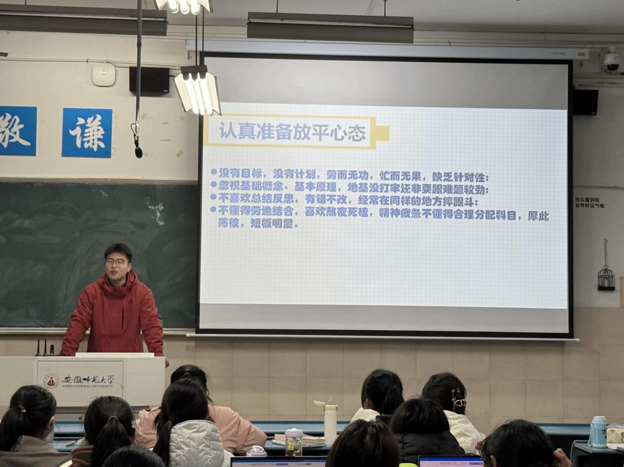 接下来,针对即将到来的英语四级考试,沈涵分享了考试注意事项,包括时间管理、答题技巧、证件准备等,提醒同学们认真备考,提前规划。在班会尾声,沈涵鼓励同学们放平心态,合理安排复习时间,以扎实的知识储备和良好的心理状态迎接考试,避免过度压力影响发挥。此次班会为同学们敲响了诚信考试的警钟,为营造积极向上、公正有序的学习环境奠定了坚实基础。