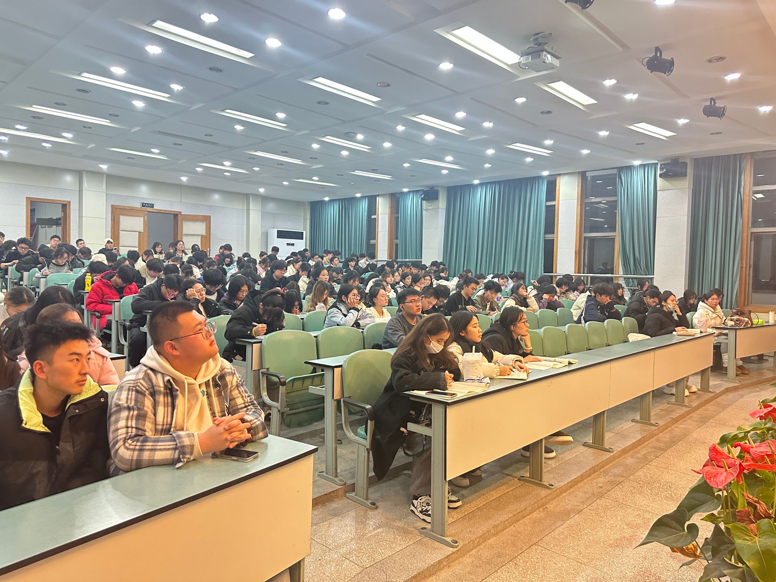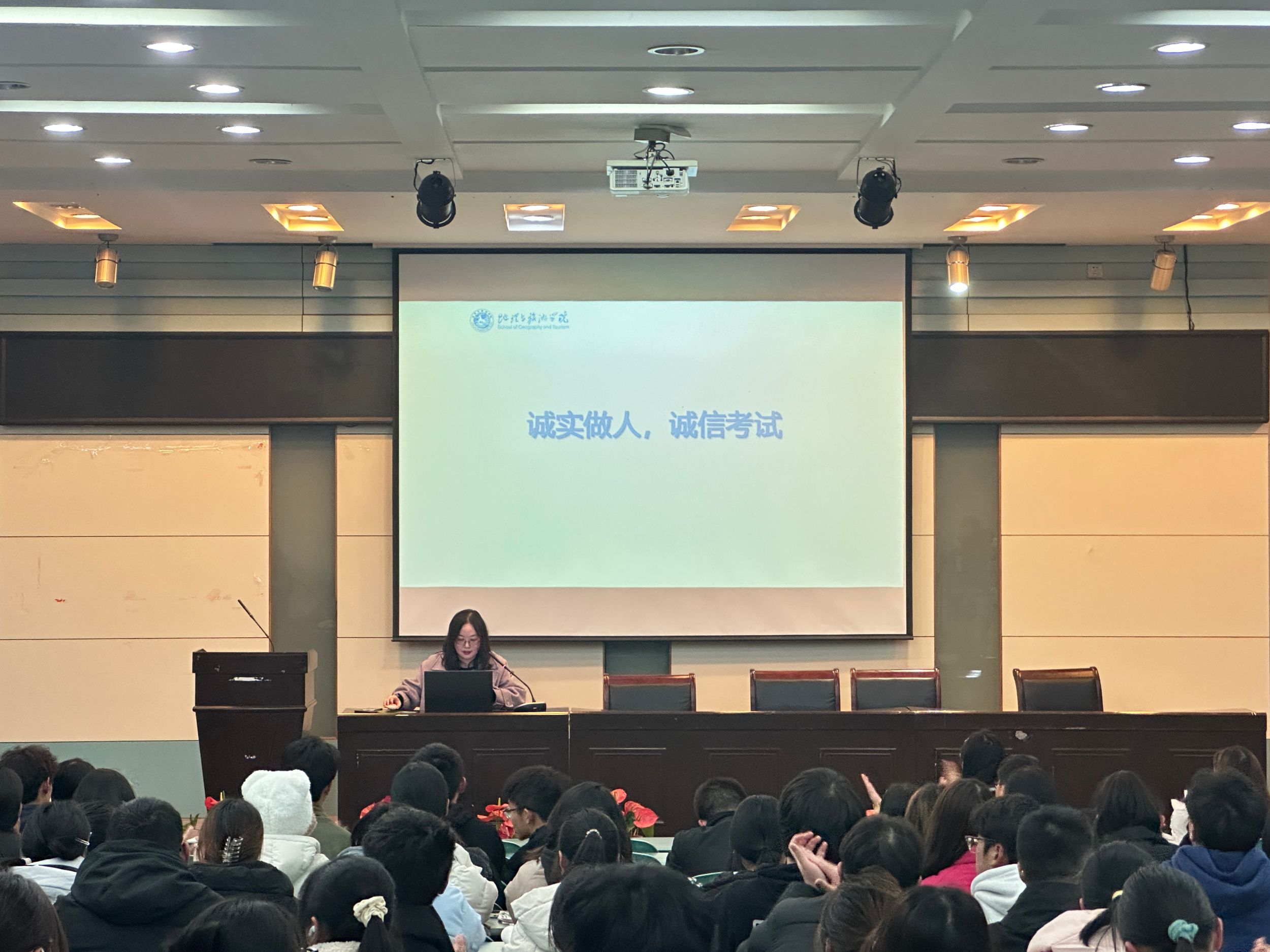 实验楼101报告厅召开考风考纪教育主题班会,会议由班助章怡晨主持,各专业全体学生参加。