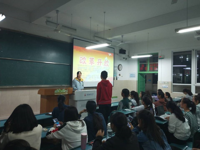 孙雪倩)10月19日晚,2018级旅游管理专业于行知楼2040202开展了主题为“我与改革共成长”的团日活动。2018级旅游管理全班同学以及本班辅导员陈祥云参加了此次团日活动,团支书杨帆担任主持人。