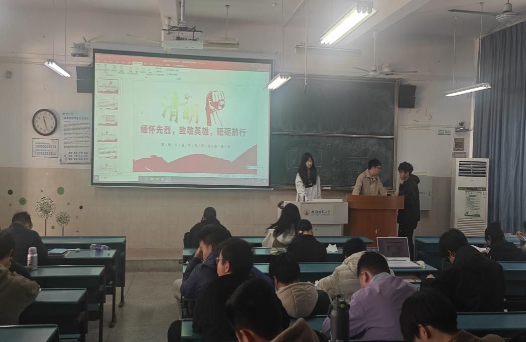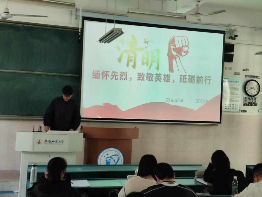 2023级地理信息科学专业两班级在教学楼2040303教室举办了两场意义非凡的清明主题班会。此次班会以“缅怀先烈,致敬英雄,砥砺前行”为主题,旨在让同学们铭记历史,传承先烈们的爱国精神,珍惜当下幸福生活。