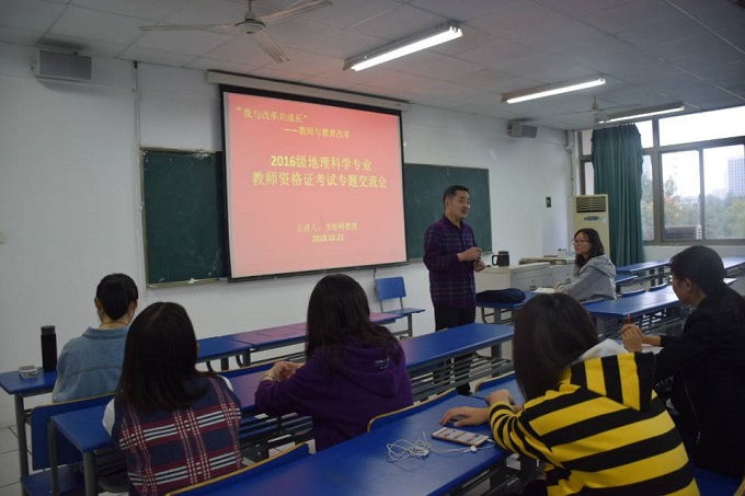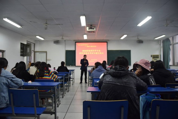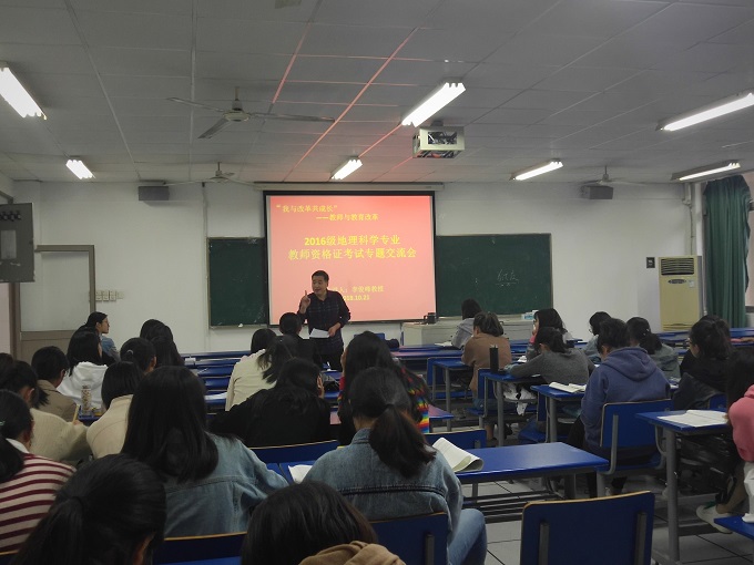 最后,李俊峰作为多年教师资格证考试面试考核人,对教师资格证面试过程中注意事项对同学们作深入交流,并祝愿2016级地理科学专业的同学们教师资格证笔试考核顺利通过!