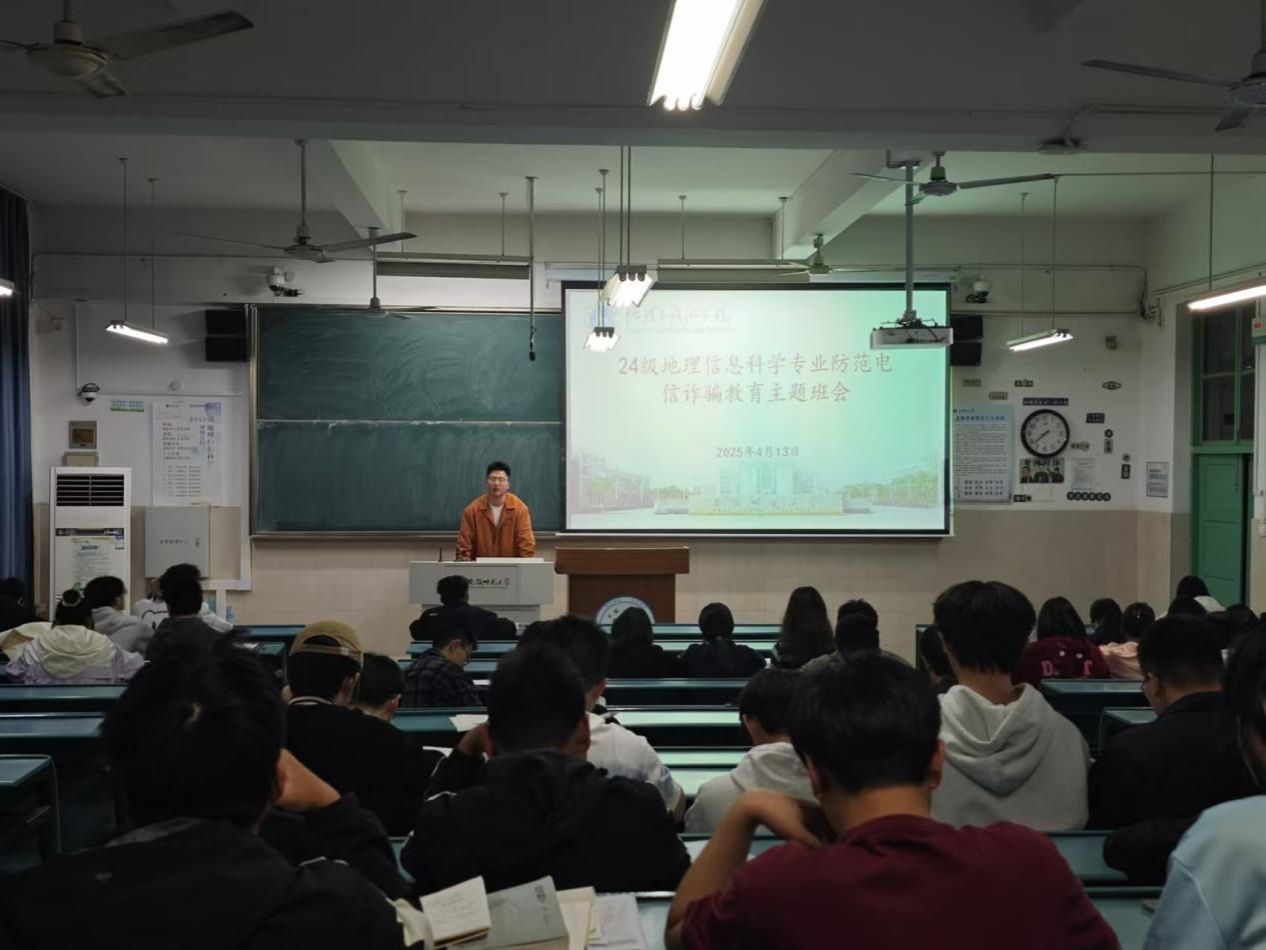 辅导员沈涵利用24级地理信息科学专业晚自习时间召开了防电诈主题班会,24级地信专业全体同学参加本次班会。