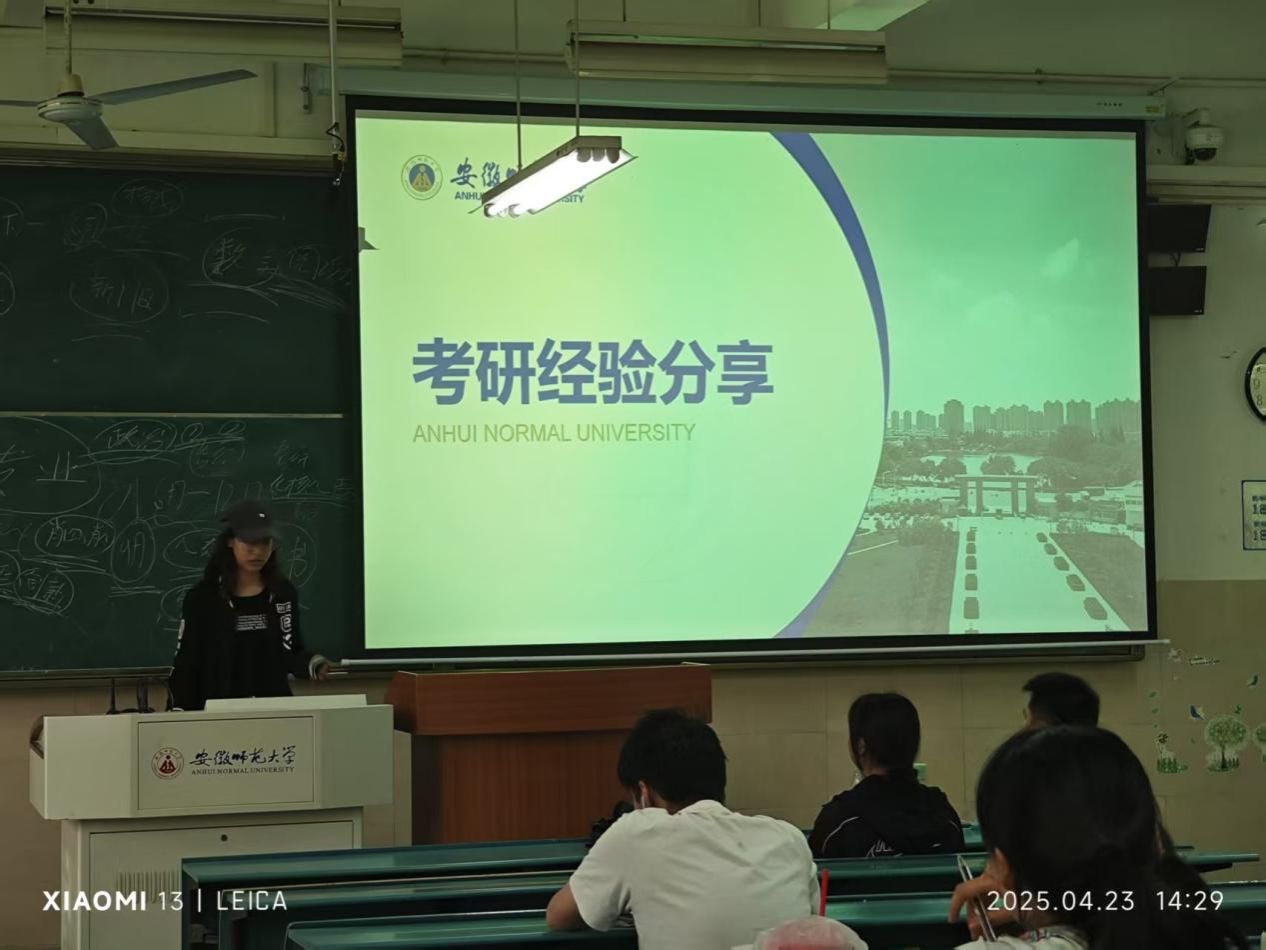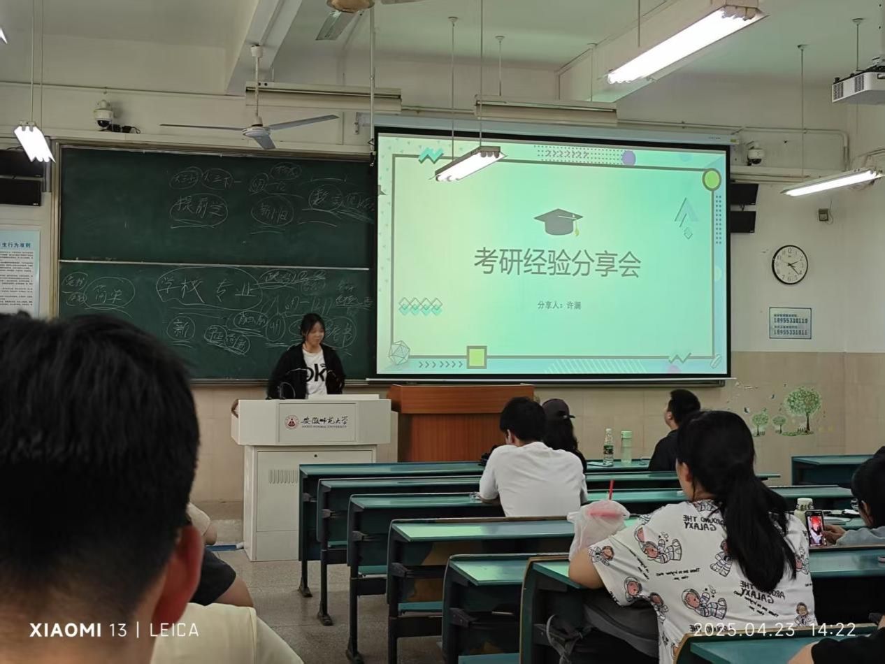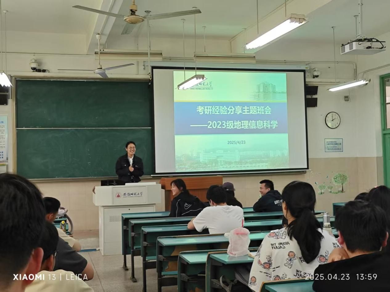 2023级地理信息科学专业“考研经验分享”主题班会在行知楼2040104教室成功举行。本次班会邀请了2021级地理信息科学专业考研成功的刘鹏程、许澜和张纹瑄三位优秀同学进行考研的经验与心得分享,会议由辅导员吴楠主持。本次分享会搭建了专业且全面的交流平台,为怀揣考研梦想的学子提供了宝贵经验与指导,专业学生积极参与,现场氛围热烈。